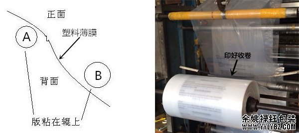 如圖所示A和B分別是塑料袋印刷機(jī)用來固定印刷版的輥,一個(gè)用于正面印刷,一個(gè)用于反面印刷。印好的塑料薄膜會(huì)像圖2哪樣,在機(jī)器的帶動(dòng)下,收卷,這樣塑料袋印刷工序就算完成了。